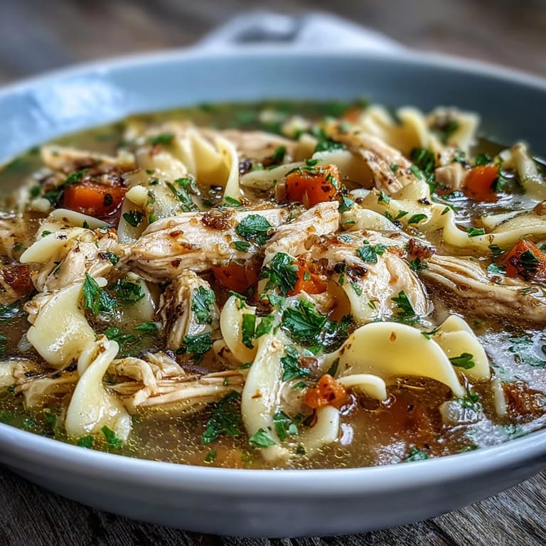 Save There's something about the sound of chicken hitting hot broth that tells you the soup is already working its magic. My mom used to make this on days when the house felt too quiet, and somehow by dinnertime, the whole kitchen smelled like comfort and garlic. The first time I tried making it myself, I was skeptical about how simple it seemed—surely something this good required more fussing. But standing there at the stove, watching the broth turn golden and the vegetables soften into the warm liquid, I realized the beauty was in its honesty.
