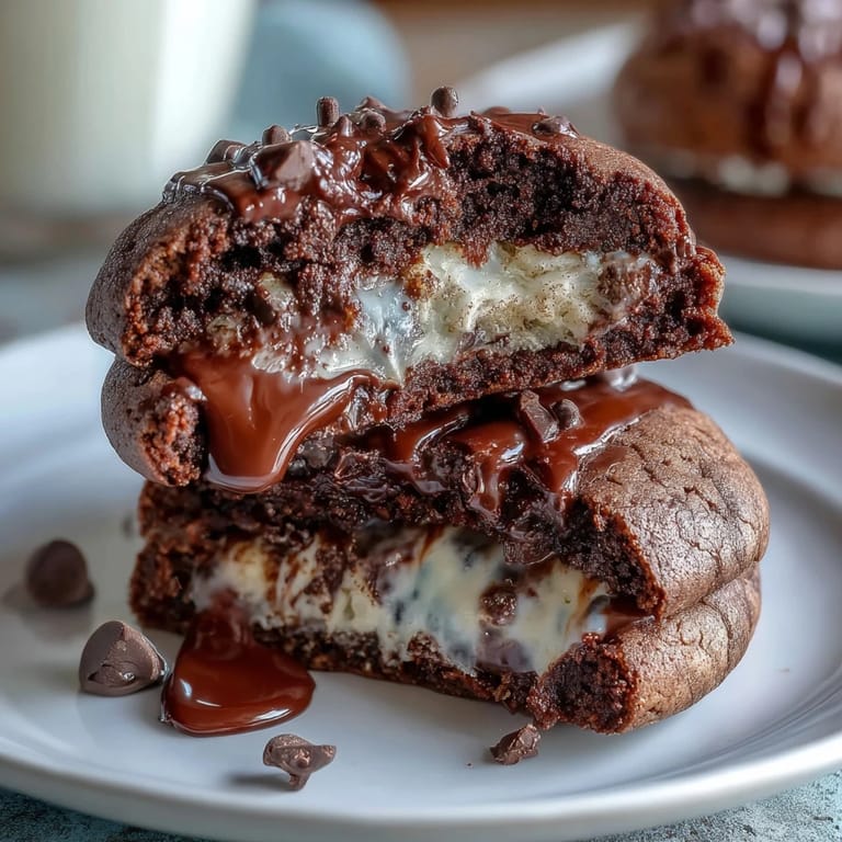 Save Inspired by the enigmatic allure of the Shadow Milk Cookie, these dark chocolate vanilla cookies bring together the deep, bittersweet richness of Dutch-process cocoa with the warm, aromatic kiss of pure vanilla. Each bite reveals a mysterious contrast: dark chocolate chunks mingling with white chocolate chips, creating a stunning visual and flavor duality that echoes the balance between shadow and light. Perfect for anyone who craves a decadent dessert with layers of complexity, these cookies are as beautiful as they are delicious.