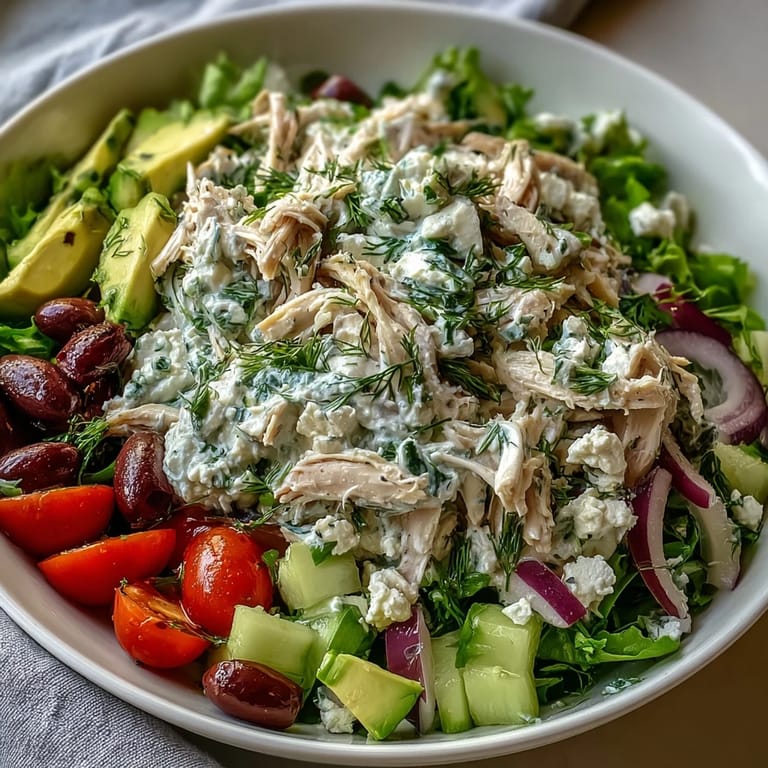 Save Last summer, I grabbed a rotisserie chicken on my way home from work, too tired to think about dinner. I had cucumber and yogurt in the fridge, and suddenly remembered a Greek place I used to love near my old apartment. Within twenty minutes, I had this salad on the table, and it tasted better than anything I could have planned. Now it's my go-to when I need something that feels special but doesn't require turning on the stove.