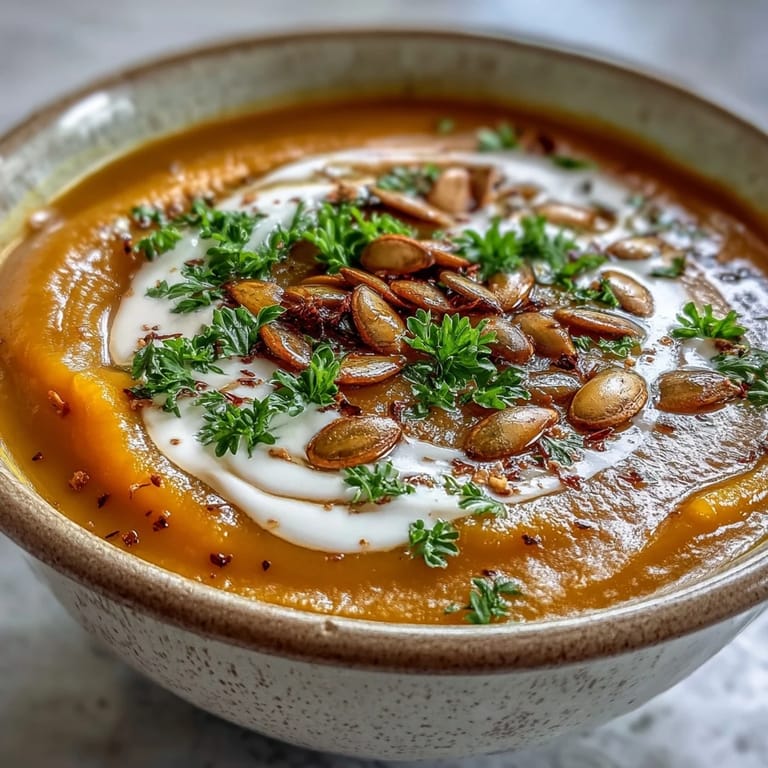Save There's something about the smell of roasting butternut squash that stops me mid-afternoon—this deep, caramelized sweetness that fills the kitchen and makes you pause whatever you're doing. I discovered this soup on a gray October day when I had a squash sitting on my counter and absolutely no inspiration. What emerged was this silky, warming bowl that tasted like someone had distilled autumn into a spoon, and I've made it countless times since whenever I need both comfort and clarity.